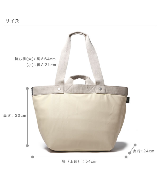 サイズ本体:約幅(上辺)54×高さ32×奥行24cm 持ち手:(大)約長さ64cm、(小)約長さ21cm ポケット数外側ファスナー付き1箇所 内側ファスナー付き1箇所 開閉部ドットボタン 底びょうなし 素材表地/合成皮革、裏地/ポリエステル、持ち手/ポリエステル 重さ約700g 生産国中国