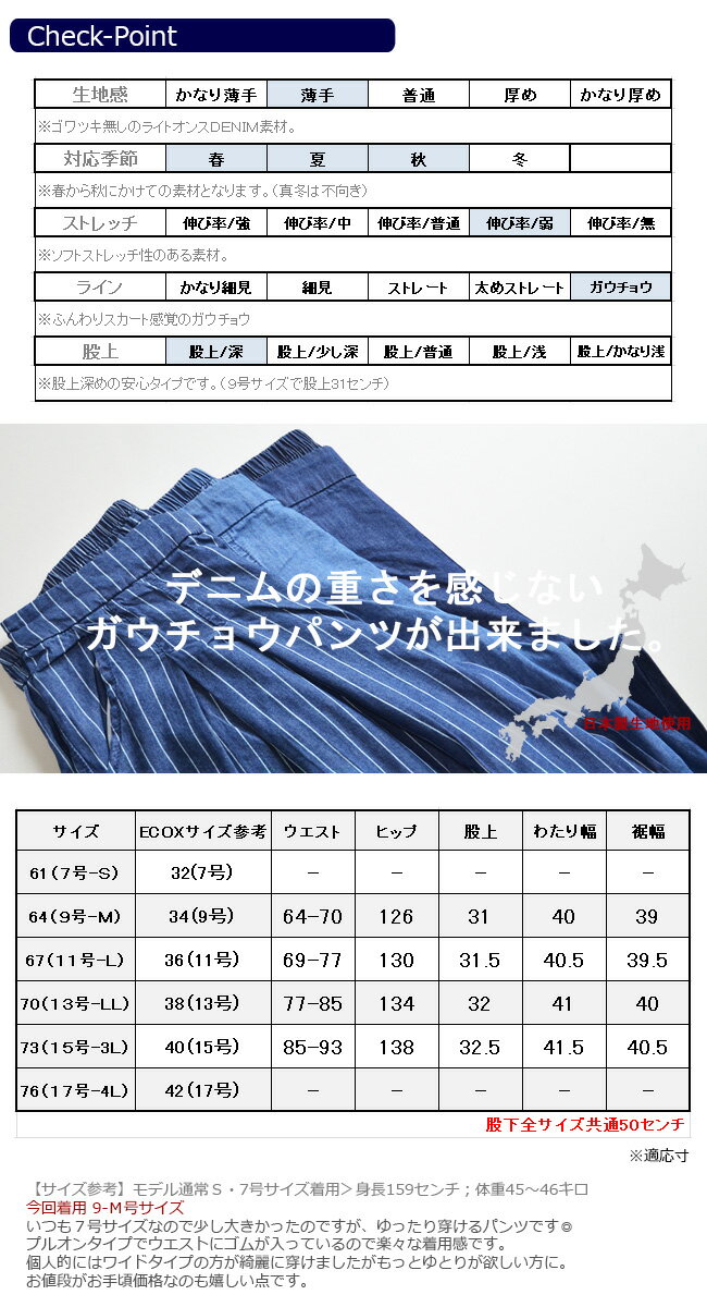 売れています【股下50センチ】★ガウチョウ/軽量デニム・ライトオンスで爽やかにガウチョウパンツ★軽やか│スカチョ│接触冷感│股上深め│ミセスファッション 40代 50代 60代│ぷちプラ│大きいサイズ│セール・SALE│Pull・On│2019SS