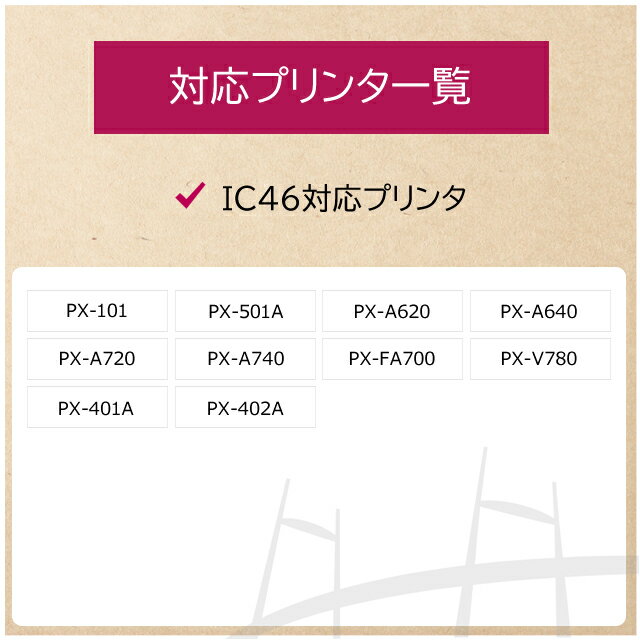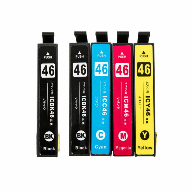 IC4CL46 エプソン IC46 4色+ブラック1本セット互換インクカートリッジ 内容:ICBK46 ICC46 ICM46 ICY46 対応機種:PX-101 / PX-501A / PX-A620 / PX-A640 / PX-A720 / PX-A740 / PX-FA700 / PXV780 / PX-401A / PX-402A